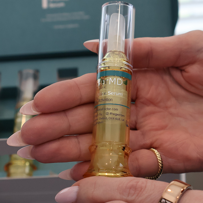 The Ultra Laser from Cynosure is a powerful, FDA-cleared non-ablative fractional thulium laser that safely creates thousands of microchannels in the scalp. These channels stimulate skin remodeling and enhance delivery of topicals like KeraFactor serum.
